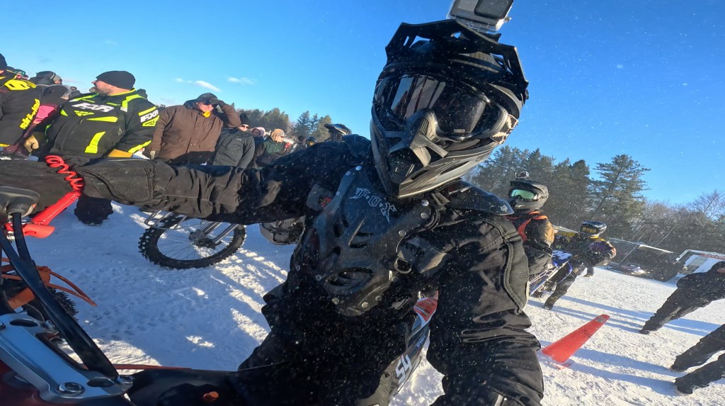 Ice Racing Crash Morin 54 KTM 450 Head Cam Pro Qualif First Time